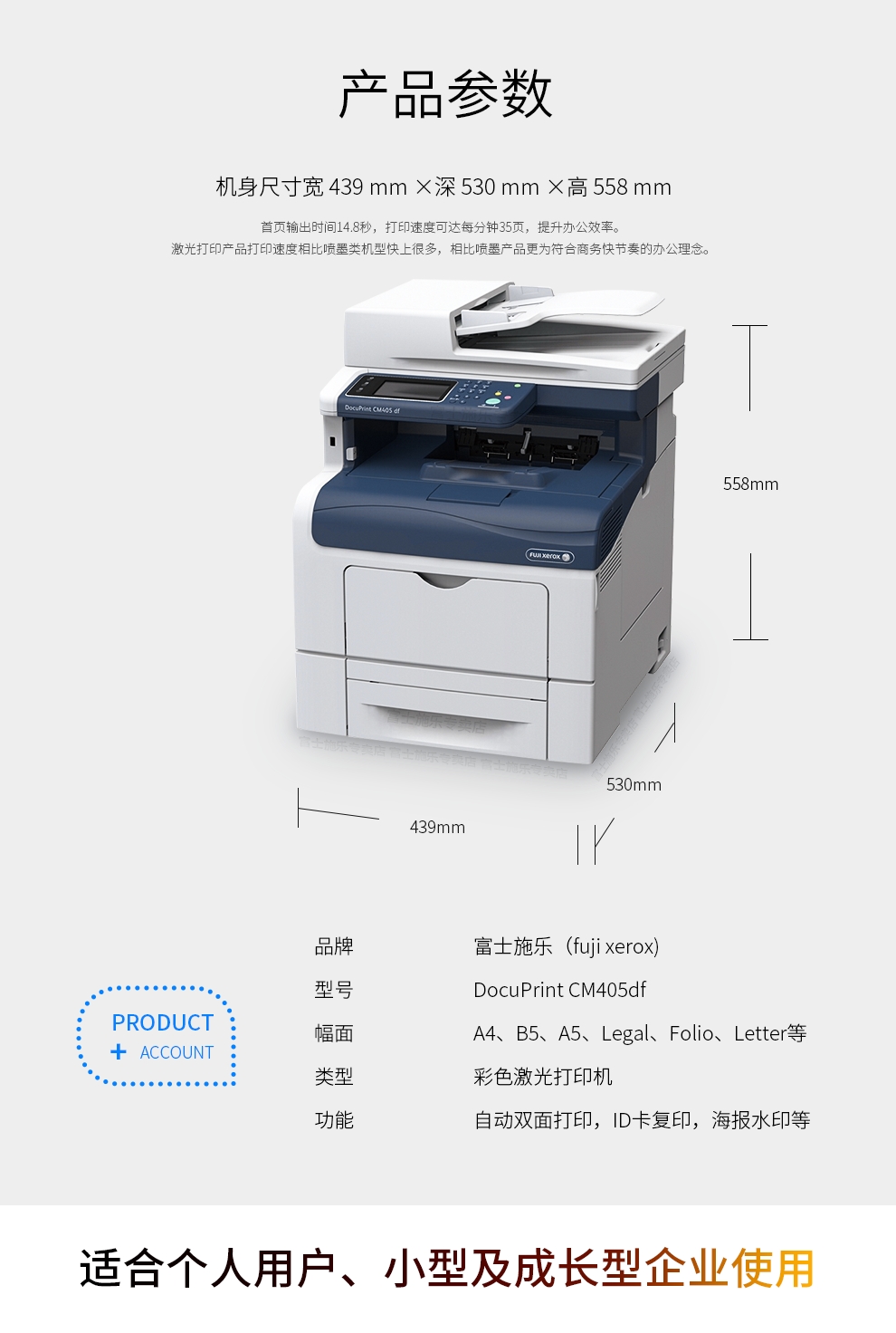- 型号:富士施乐 DocuPrint CM405df 多功能一体机