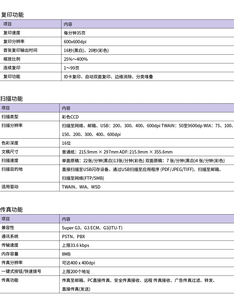 - 涵盖功能:打印 / 复印 / 扫描